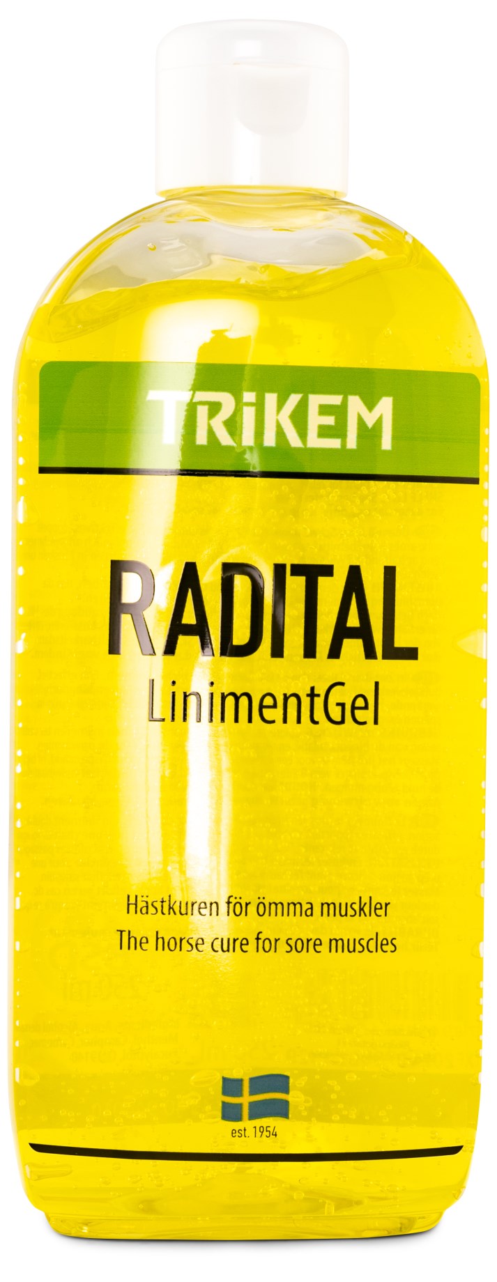 Radital linimentgel från Trikem är en effektiv linimentgel som fungerar för människor såväl som häst och hund. Detta liniment ger en kylande känsla vid appliceringen, för att sedan öka blodgenomströmningen och ge en långvarig värme. Att behandla ömma, utarbetade muskler med liniment kan minska återhämtningstiden och samtidigt ge lindring vid tillfällig värk.