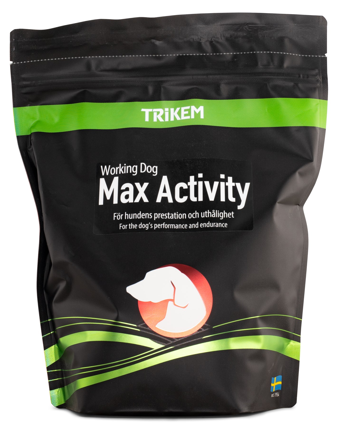 Trikem WorkingDog MaxActivity är ett kosttillskott för den aktiva hundens välmående, prestation och återhämtning. Tillskottet innehåller bland annat kollagen och makromineraler som är viktiga beståndsdelar i skelett, ligament och senor. MSM och vitamin E bidrar i sin tur till muskelfunktion och återhämtning. Dessutom innehåller tillskottet en prebiotisk jästkultur med tillsatt lecitin, vilket verkar vårdande och skonsamt för hundens mage och tarm. TrikemWorkingDog MaxActivity består av en välsmakande formula som enkelt blandas i hundens foder. Perfekt som ett extra tillskott inför perioder med krävande arbete, som till exempel längre tävlingsperioder eller jaktsäsong!