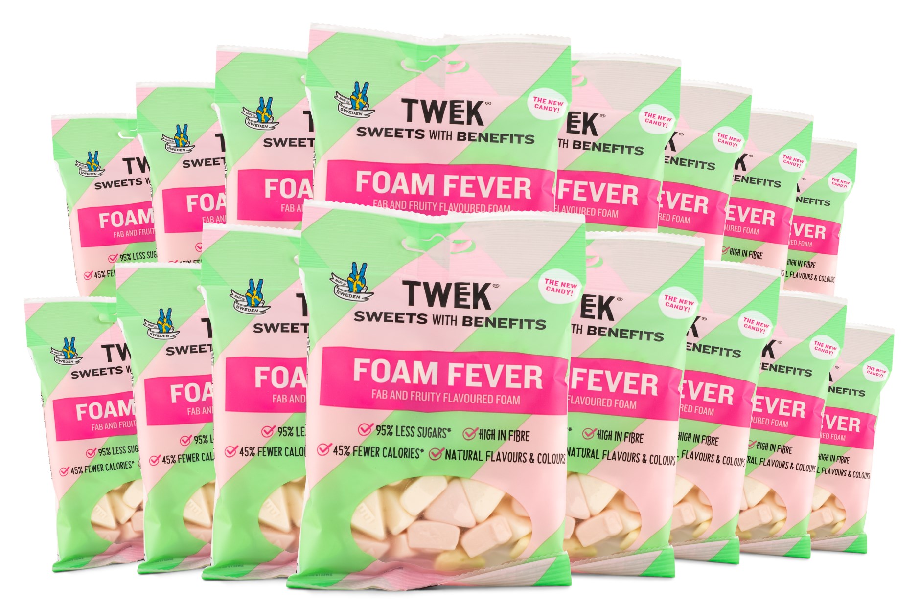 Njut av Tweek Foam Fever - ett skumgodis med fräsch fruktsmak, 95 % mindre socker och 45 % färre kalorier än traditionellt godis. Ett perfekt, gott och smart val när sötsuget slår till!