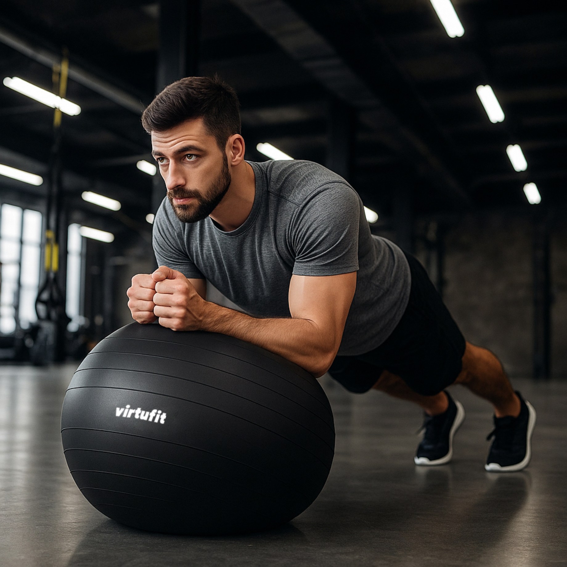 Virtufit Gym Ball finns i flera storlekar för att passa din längd bäst. Pumpa upp bollen då och då för att bibehålla fastheten i träningsbollen. Använd exempelvis till hantelövningar, övningar med egen kroppstyngd och till balansövningar.