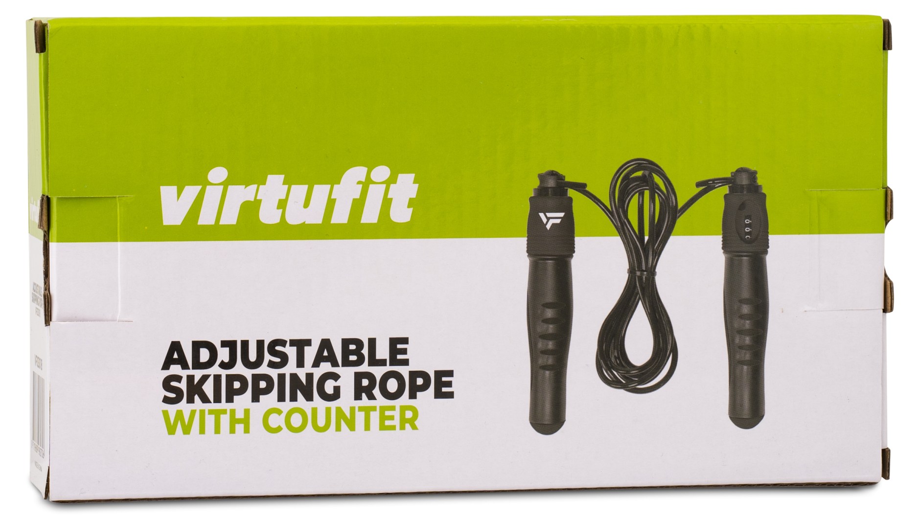 Träna var du vill med Virtufit Skipping Rope With Counter! Ett hopprep som har en inbyggd räknare som håller koll på hur många hopp du gör. Att hoppa hopprep tränar din balans, koordination och uthållighet. Hoppträning är perfekt som komplement till andra sporter eller om du vill få igång flåset för effektiv fettförbränning. Detta hopprep har ergonomiska handtag och maxlängden är 320 cm.