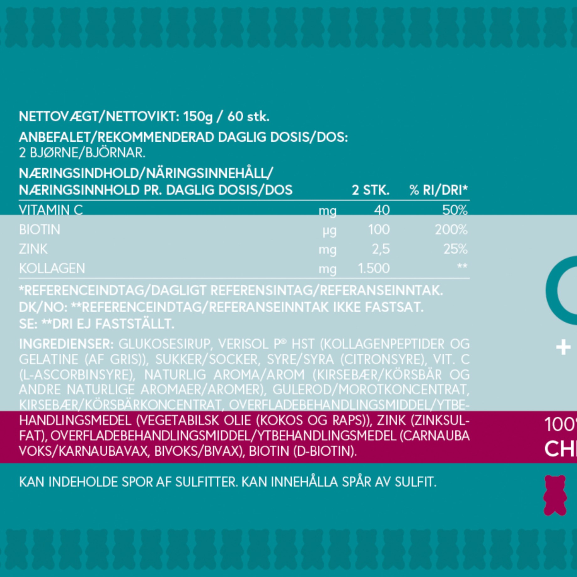 Gummibjörnar med kollagen, vitamin C, biotin och zink