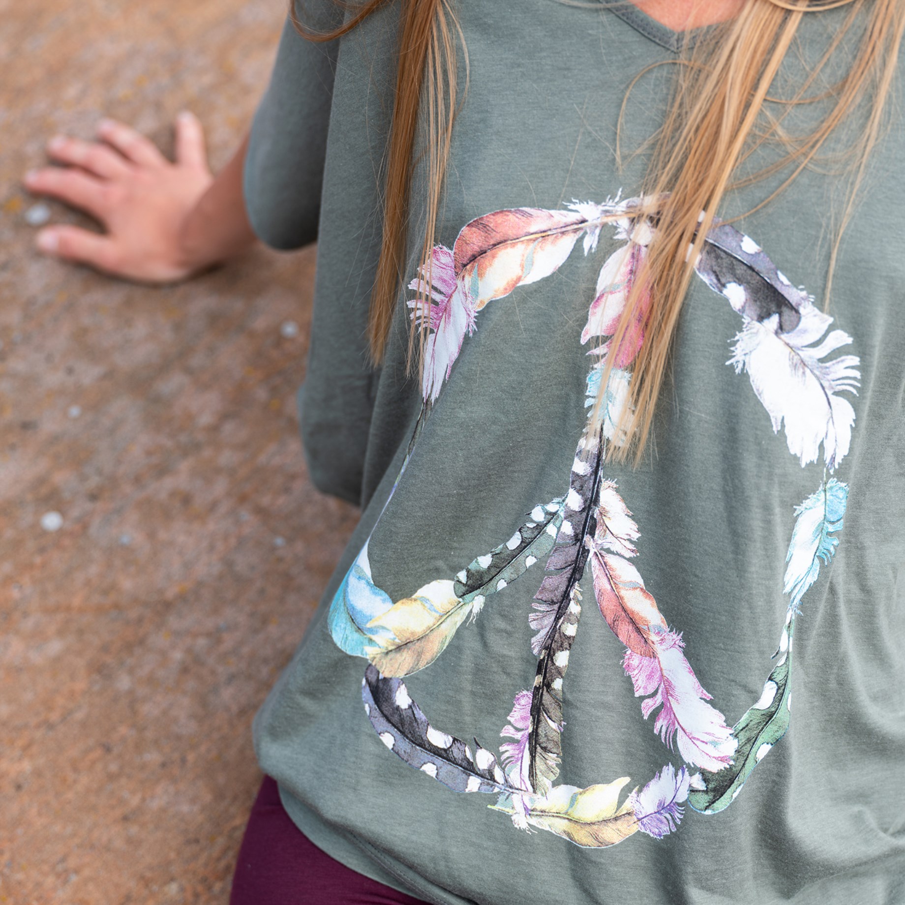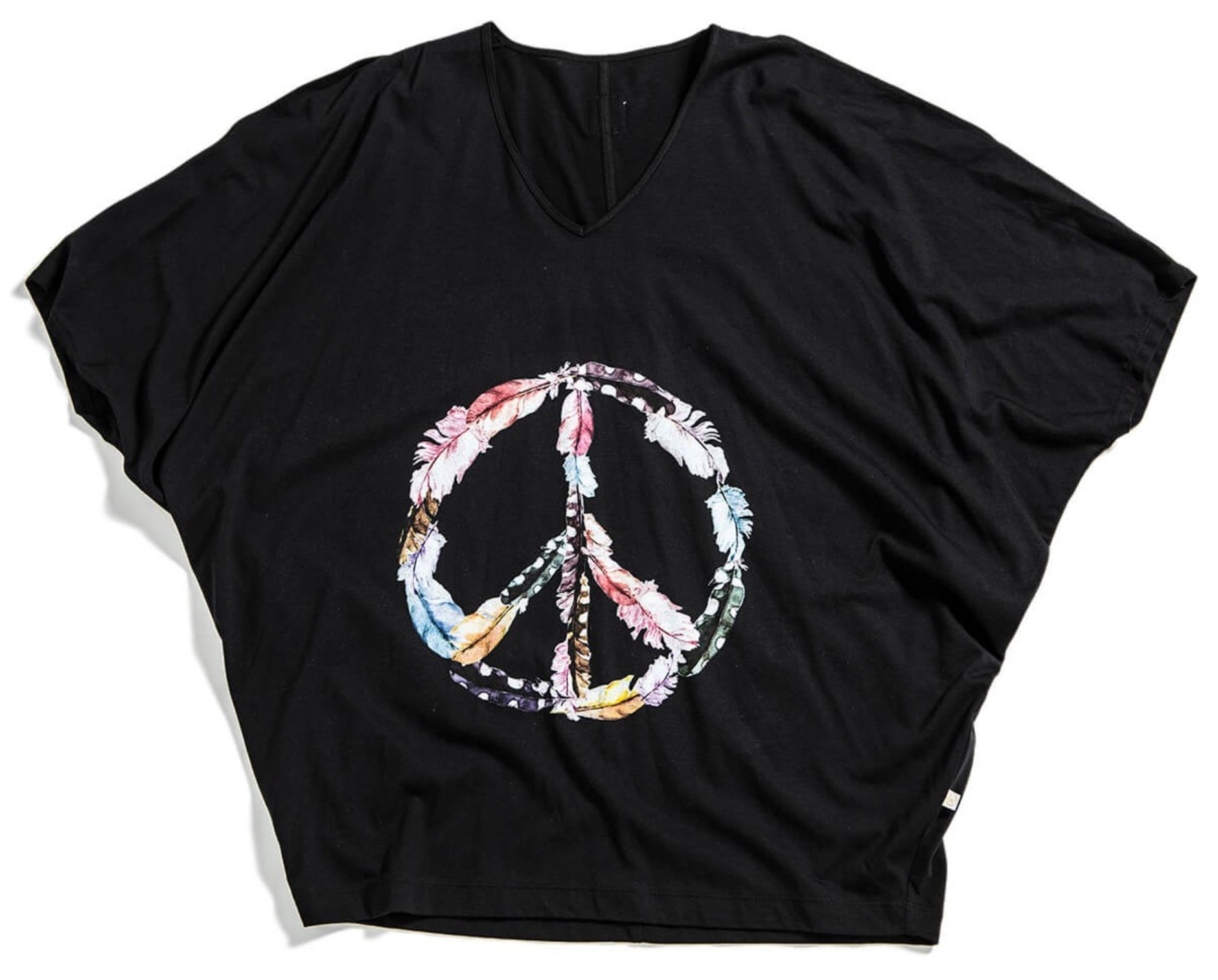 Wearmyyoga Peace Top är en rymlig topp i oversize-modell som är åtsittande kring höften och mer ledig på överkroppen. Toppen har ett större akvarelltryck i form av ett peacemärke på bröstet. Den är utmärkt när du vill ha något löst sittande och rymligt på träningen eller något avslappnat till vardags.